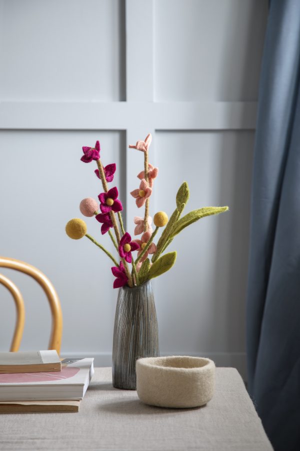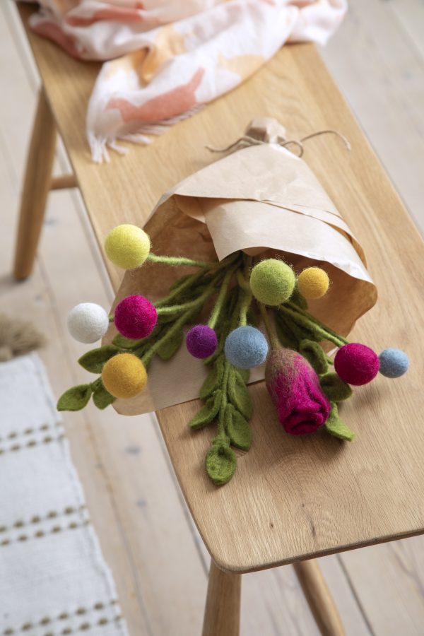 Les fleurs boules en laine Gry & Sif sont confectionnées à la main au Népal dans le respect du commerce équitable. Chaque fleur boule sur tige est réalisée en laine feutrée, une matière naturelle et écoresponsable, offrant un rendu doux et chaleureux.