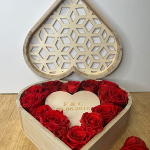 Coeur en bois personnalisé avec roses éternelles – Grand format